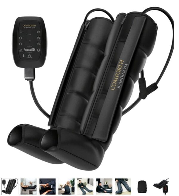 Comforth Recovery Boots er et sæt kompressionsstøvler, der arbejder med dynamisk kompression, hvor støvlerne skiftevis fyldes og tømmes for luft i en bestemt sekvens. Målet er at give en rytmisk trykmassage fra fod og op gennem benet, som mange bruger til at få lettere ben, mindre ømhed og en mere behagelig restitution efter træning eller lange dage med meget stående og gående arbejde.